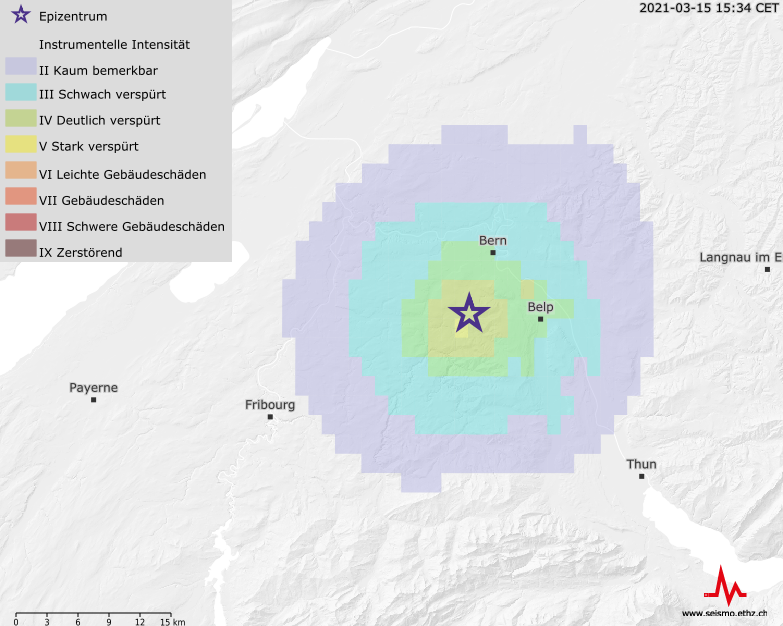 6 km südwestlich von Bern ein Erdbeben registriert. Das Beben