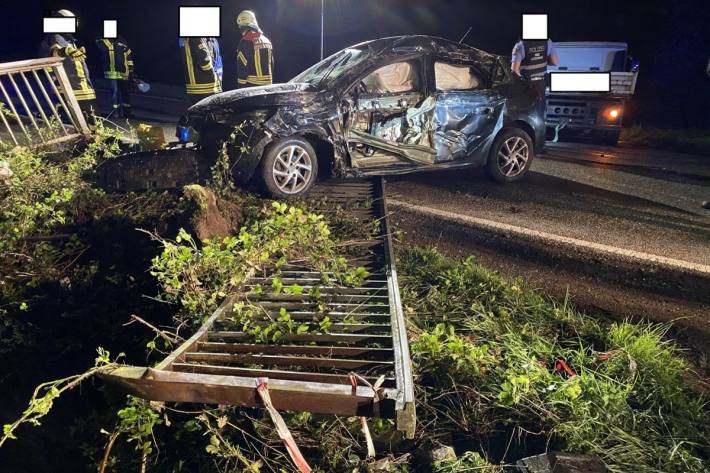 Eine Opel-Fahrerin kam von der Fahrbahn ab und verursachte erheblichen Schaden. Am Montagabend fuhr die 18-Jährige mit ihrem Fahrzeug auf der L 386 von Nußbach in Richtung Rudolphskirchen. In einer Kurve verlor sie offensichtlich aufgrund überhöhter Geschwindigkeit auf nasser Fahrbahn die Kontrolle über ihren PKW, kam von der Fahrbahn ab, durchbrach ein Geländer und kam unterhalb einer Böschung zum Stehen. Die Fahrerin wurde hierbei erheblich verletzt und nach erfolgter Erstversorgung durch den Rettungsdienst in eine Klinik zur weiteren Behandlung gebracht.