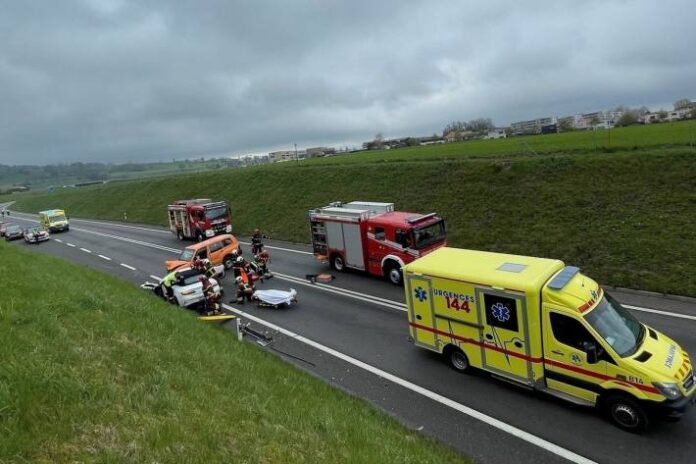 Gestern, kurz vor 13 Uhr, hat sich auf der H189 in La Tour-de-Trême eine Frontalkollision zwischen zwei Fahrzeugen ereignet. Beide Lenker wurden verletzt. Zu Interventionszwecken wurde die Umfahrungsstrasse für 3 Stunden gesperrt. Montag, 22. April 2024, kurz vor 3 Uhr, wurde die Intervention der Rettungsdienste auf der H189 in La Tour-de-Trême infolge eines Verkehrsunfalls mit zwei Fahrzeugen verlangt. Aus den ersten Erhebungen geht hervor, dass eine 28-jährige Autofahrerin auf der H189 in Richtung Autobahn unterwegs war. Aus einem noch ungeklärten Grund kam sie von ihrer Fahrspur ab und kollidierte frontal mit einem entgegenkommenden Fahrzeug. Der schwer verletzte 68-jährige Lenker wurde von der REGA in ein Spital geflogen. Die 28-jährige Autofahrerin war in ihrem Fahrzeug eingeklemmt. Sie wurde von der Feuerwehr des Ausrückstandorts Bulle befreit und anschliessend mit der Ambulanz in ein Spital gebracht. Zu Interventionszwecken wurde die Umfahrungsstrasse während 3 Stunden für den Verkehr gesperrt. Eine Umleitung wurde aufgestellt. Derzeit sind die genauen Umstände des Unfalls noch nicht geklärt. Eine Ermittlung ist im Gange. Quelle der Polizei News heute: Kapo FR