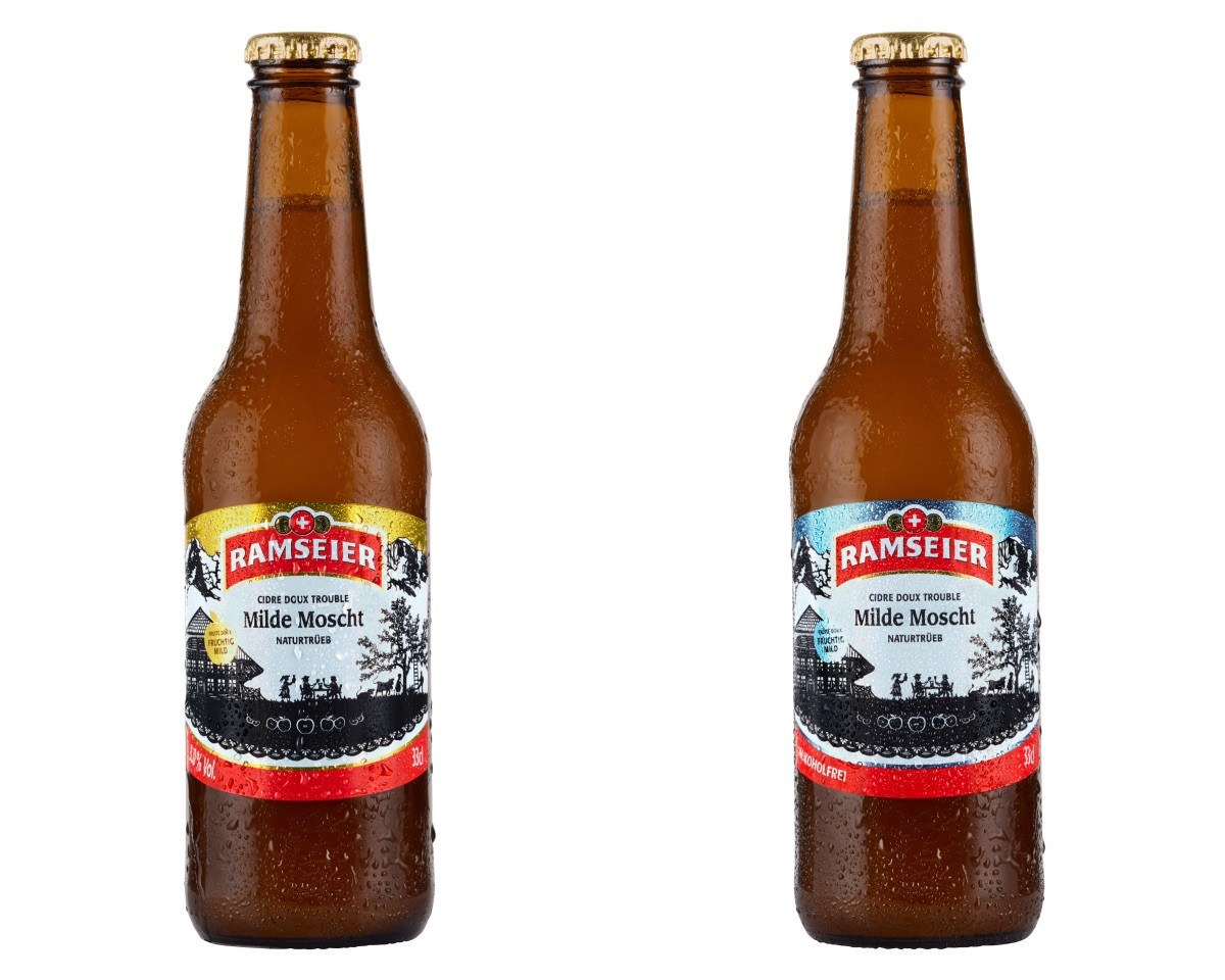 (Sursee)(PPS) Mit dem RAMSEIER Milde Moscht hat die RAMSEIER Suisse AG 2020 ein naturtrübes, natürliches Apfelweinprodukt mit und ohne Alkohol in der 49 cl Mehrwegglas Bügelflasche auf den Markt gebracht. Dieses enthält rund 30 verschiedene Schweizer Apfelsorten. Neu ist der RAMSEIER Milde Moscht als alkoholhaltige und alkoholfreie Variante auch in der 33 cl Einwegglasflasche und der praktischen 6er-Karton-Verpackung im Schweizer Getränkefachhandel erhältlich.