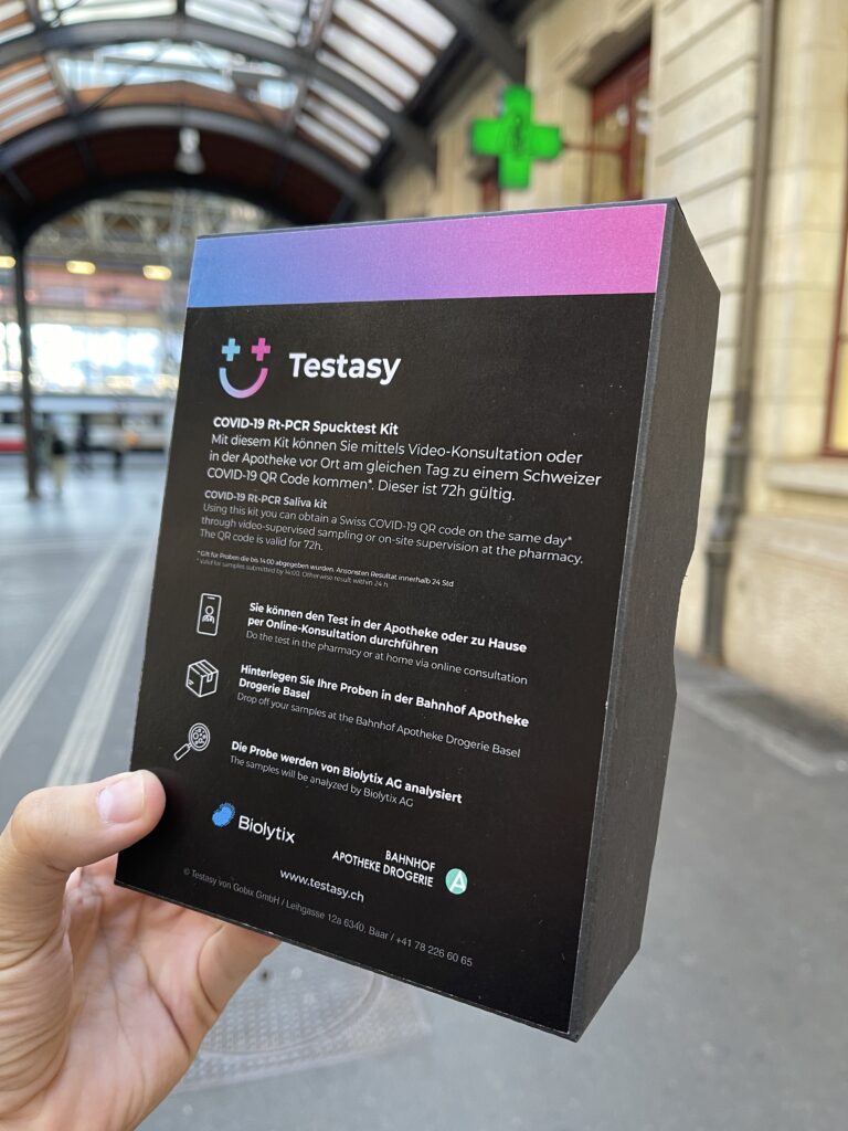Das PCR-Testkit kann man entweder online auf der Testasy-Webseite bestellen oder in einer Apotheke aus dem Netzwerk von Dr. Bähler Dropa kaufen (aktuell nur Bahnhof Apotheke Basel). Nach Erhalt des Kits gibt es die Möglichkeit, die Speichelprobe direkt in der Apotheke unter Anleitung einer medizinischen Fachperson – oder zu Hause im Rahmen einer Online-Konsultation durchzuführen. Wer sich für letzteres entscheidet, scannt zuhause den QR-Code auf der Verpackung ein, um eine telemedizinische Beratung zu vereinbaren. Während des Videoanrufs wird man von einer medizinischen Fachperson Schritt für Schritt durch den Prozess geführt. Nach Probenentnahme muss die Probe in der Bahnhof Apotheke abgegeben werden – zudem besteht die Möglichkeit sie direkt per Kurier in das Labor liefern zu lassen. Dieser Service ist während der Geschäftszeiten an Wochentagen sofort und nach Terminvereinbarung rund um die Uhr verfügbar – dies für 105 Franken. Das Covid Zertifikat ist 72 Stunden nach Probenahme gültig. Bei Abgabe bis 14 Uhr ist ein Zertifikat am selben Tag garantiert. Ab dem 5. Oktober wird Testasy in Zusammenarbeit mit der Orphanbiotec AG auch Tests für Unternehmen anbieten.
