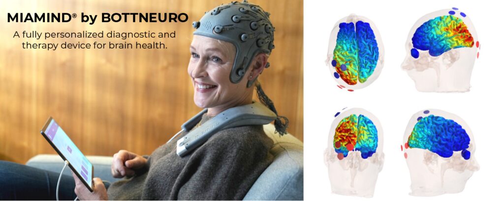 Bottneuro entwickelt derzeit eine personalisierte Wechselstromtherapie mit dem Miamind® Neurostimulator zur Behandlung der Alzheimer Krankheit und der zugrundeliegenden Neuroinflammation. Dank integrierter EEG-Funktion des Miamind® Neurostimulators können die Effekte der Therapie auf die Hirnaktivität direkt gemessen werden, ohne dass eine separate EEG-Messung erforderlich ist.