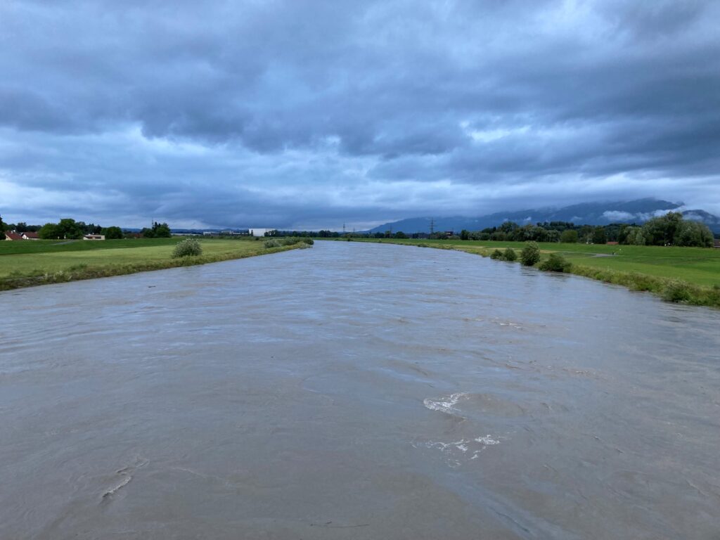 Die teils intensiven Niederschläge im Bündnerland in den letzten 24 Stunden haben die Pegel der Flüsse im Einzugsgebiet des Alpenrheins im Laufe der Nacht deutlich ansteigen lassen. Die Abflussspitze in Diepoldsau/Lustenau wird am Mittag erwartet. Die derzeitigen Prognosen des BAFU gehen von einem maximalen Abfluss zwischen 1’100 und 1’500 m3/s aus.