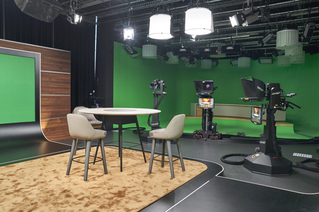 Herzstück der neuen Infrastruktur sind die modernsten TV-Studios der Schweiz. Ein modulares Studiosetting mit zwei Virtual Reality-fähigen Studios und Robotik-Kameras ermöglichen eine flexible Studionutzung für regionale, nationale und digitale Bewegtbildproduktionen.